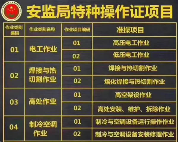 一、應(yīng)急管理廳(原安監(jiān)局)特種操作證俗稱“”上崗證”,證書每3年進(jìn)行一次復(fù)審、6年換證。常見的低壓電工和高壓電工都是由應(yīng)急管理廳頒發(fā)的。